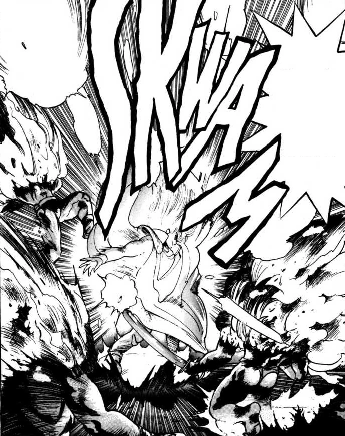 Dark Schneider uses this spell to kill a bunch of Orcs that Kai Harn sends to attack him.[3]